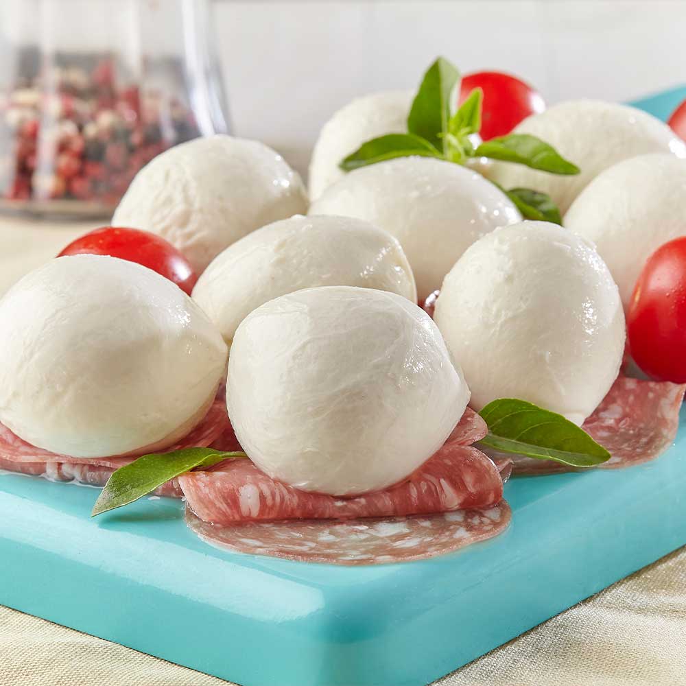 O Bocconcino é uma mozzarella de leite de búfala de tamanho médio (aproximadamente 30g cada), de sabor suave e levemente adocicado e cor branquinha. São ótimas fontes de proteína e são livres de glúten.